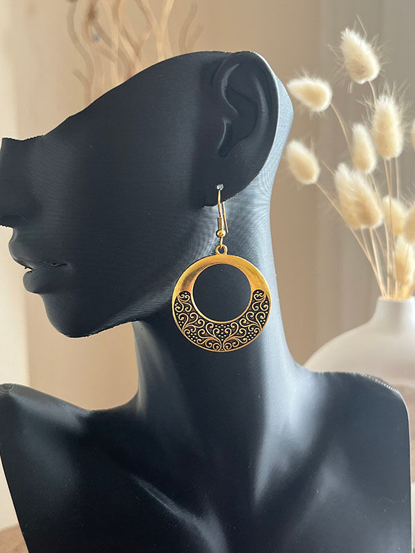Vintage Tarz Oyma Tasarım Metal Küpe