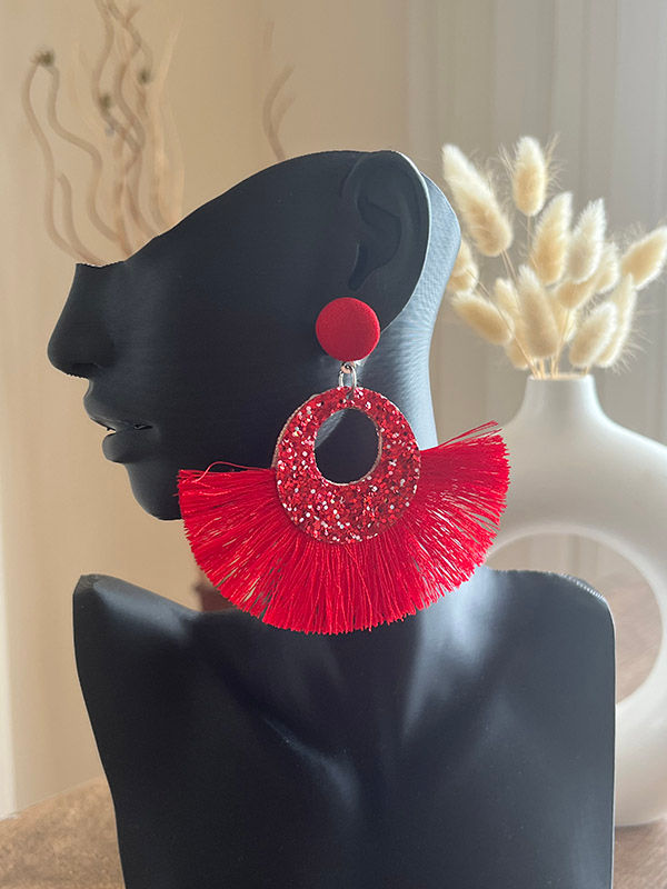 Tatil Stil Kumaş Renkli Boho Tasarım Kırmızı Küpe